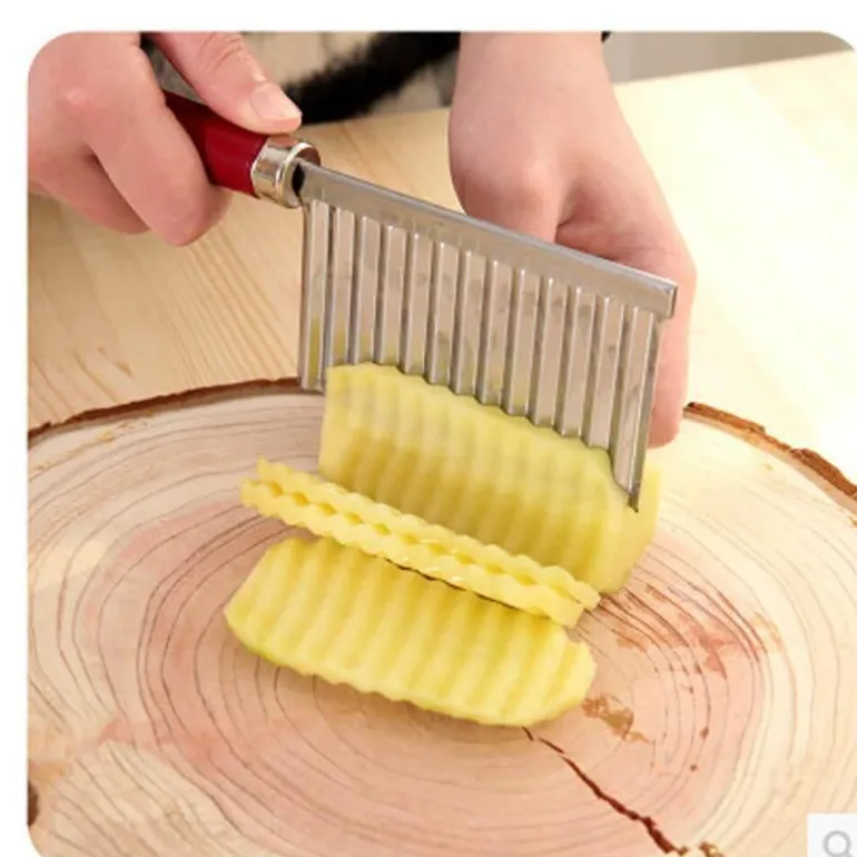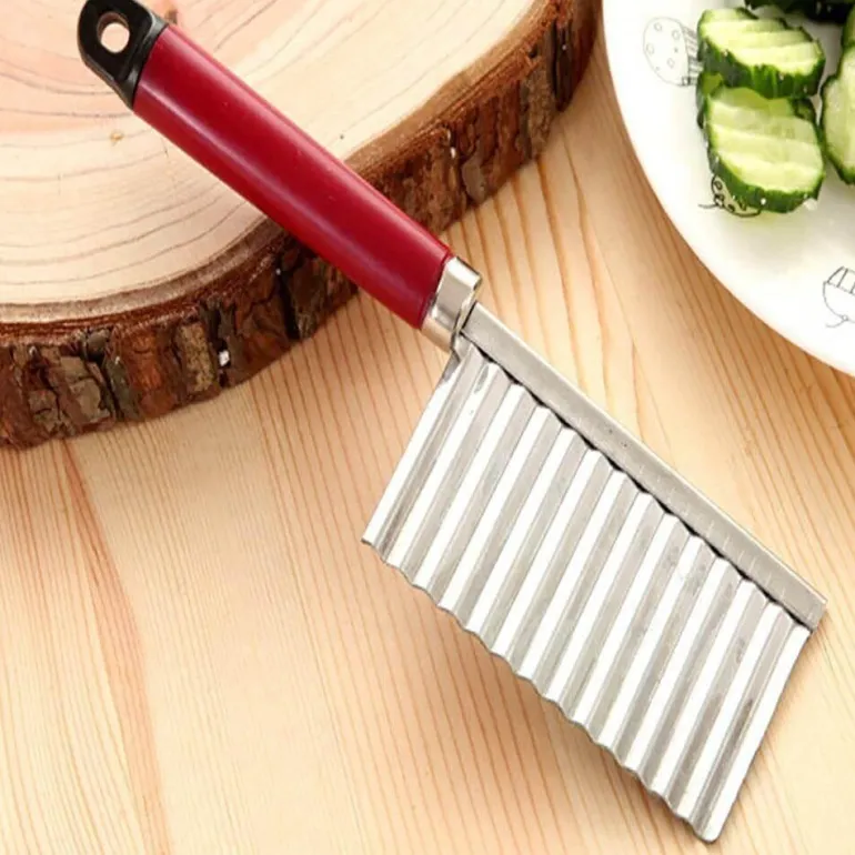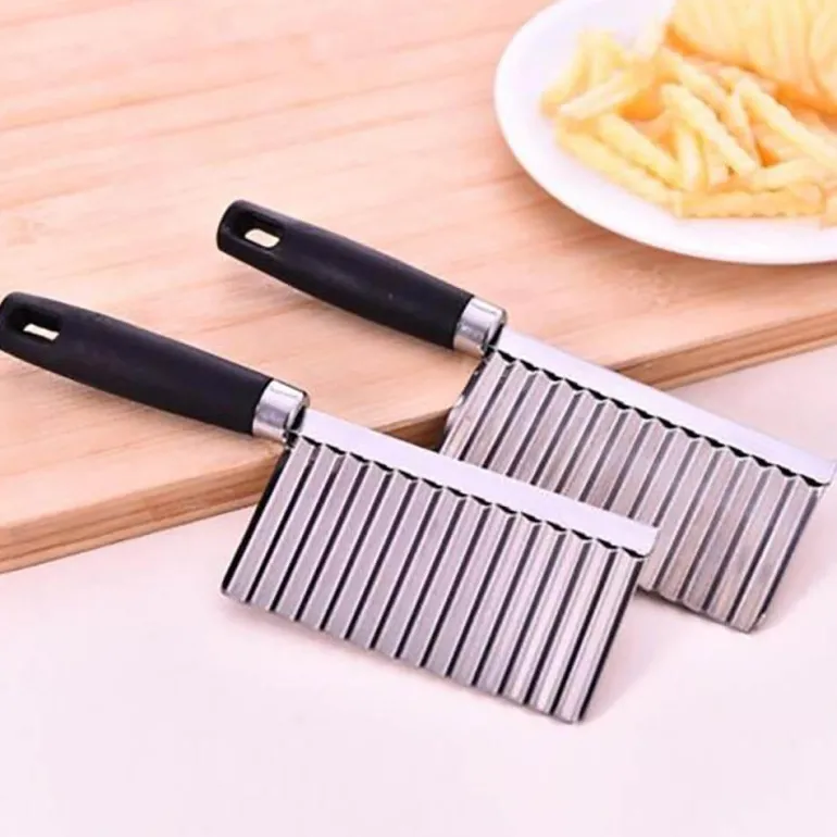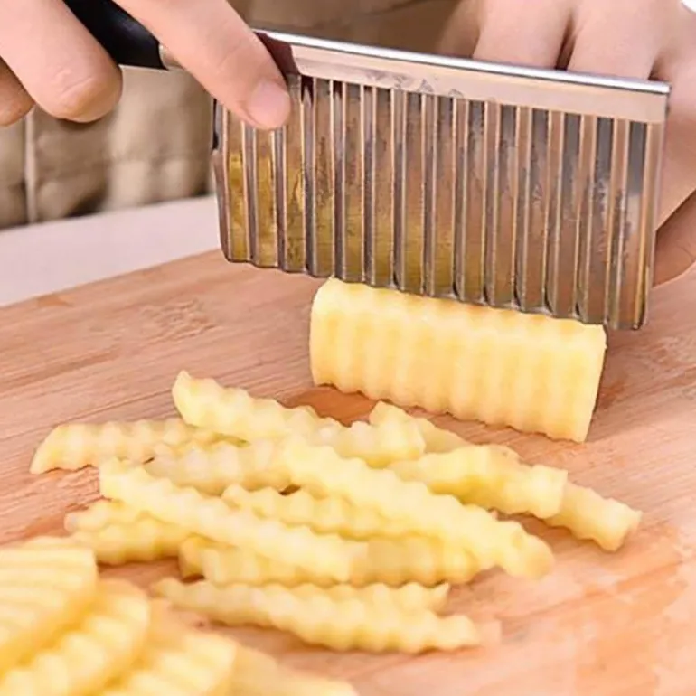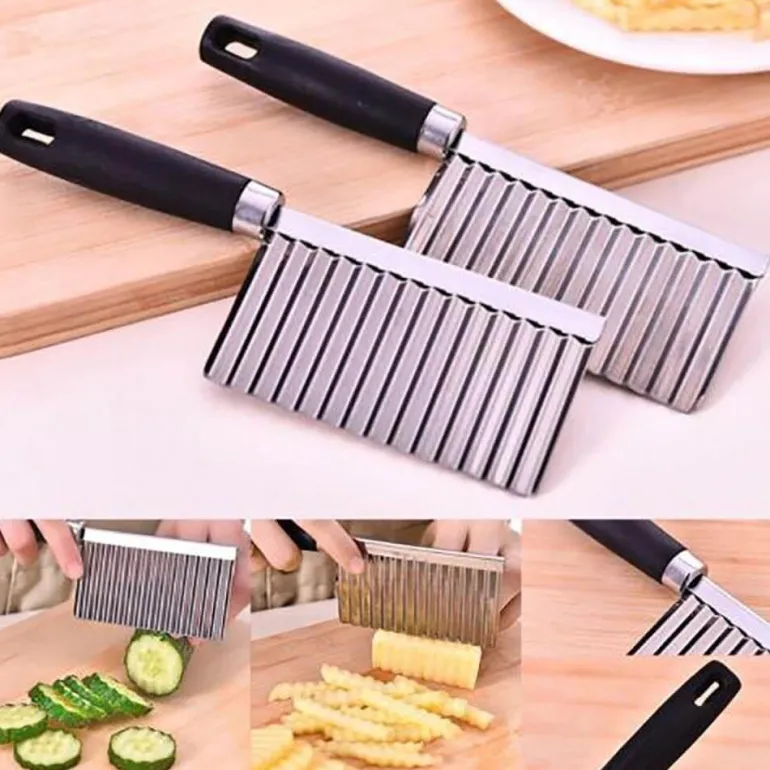 Entdecken Sie ein praktisches Küchenwerkzeug, mit dem Sie mühelos elegant gewellte Kartoffelstreifen und -scheiben herstellen können, die an die Präsentationen von Profiköchen erinnern. Dieser gewellte Kartoffelschneider ist aus hochwertigem Edelstahl gefertigt und garantiert so Langlebigkeit und eine lange Lebensdauer in Ihrer Küche.