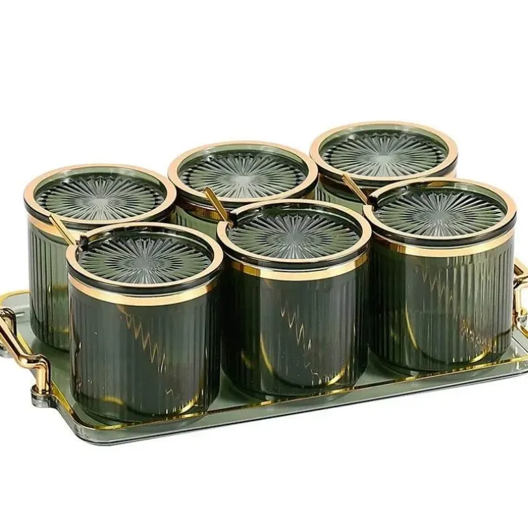 Verschönern Sie Ihre Küche mit diesem eleganten Gewürzdosen-Set aus Acryl mit praktischem Tablett. Diese Kollektion aus langlebigem, hochwertigem Acryl bereichert Ihr kulinarisches Erlebnis und sorgt gleichzeitig für Ordnung in Ihrer Küche.