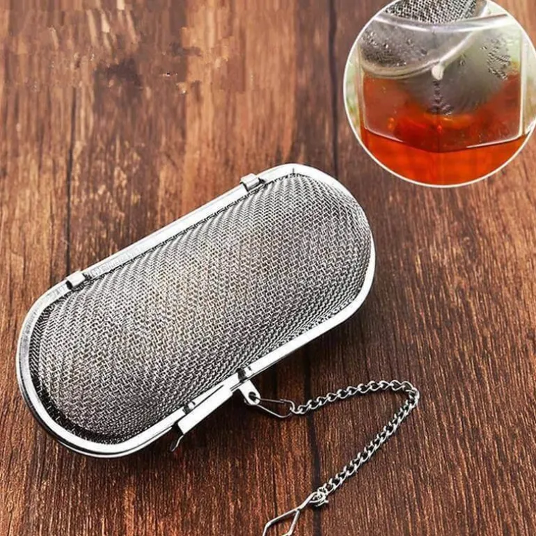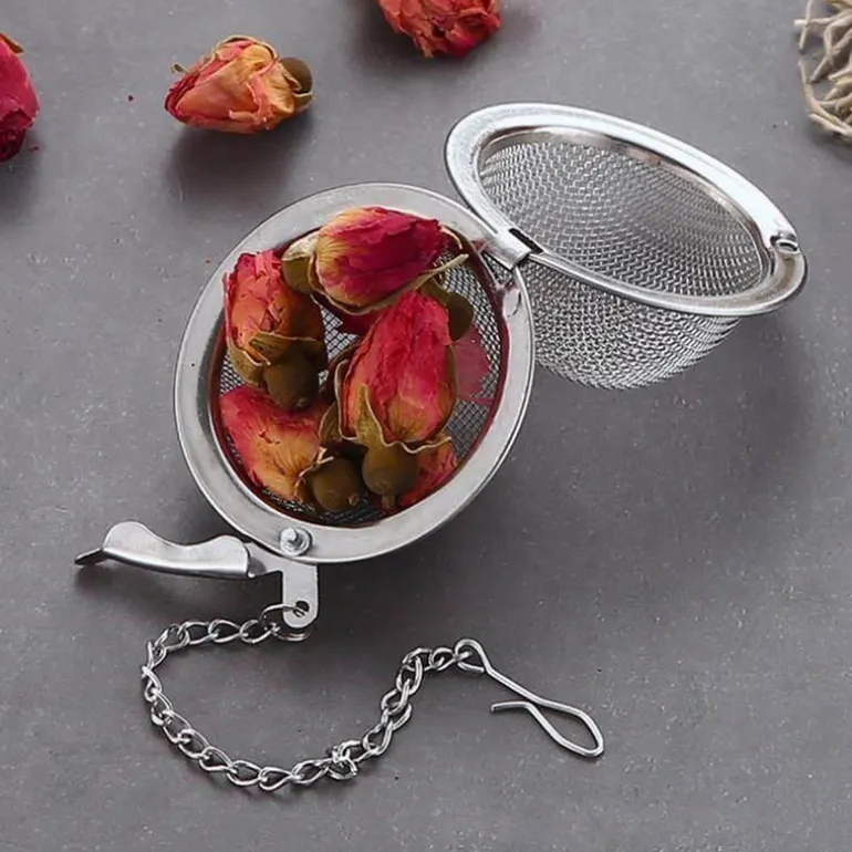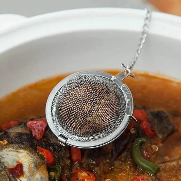 Erleben Sie den Komfort unserer Gewürzkugel aus Edelstahl, einem ultrafeinen Kräutersieb für müheloses Aufbrühen. Dank Haken und langer Kette lässt sich dieses Sieb ganz einfach an Ihrer Teetasse oder Kanne befestigen und nach dem Ziehen Ihres Tees leicht entnehmen.