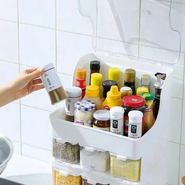 Mit dieser multifunktionalen Küchenaufbewahrung haben Sie Ihre Gewürze stets griffbereit und übersichtlich. Dieser Gewürz-Organizer vereint Funktionalität und Ästhetik und ist die perfekte Ergänzung für jede Küche. Sein effizientes Design wertet nicht nur Ihre Küche auf, sondern nutzt auch wertvollen Platz optimal aus und sorgt für eine aufgeräumte und übersichtliche Umgebung.