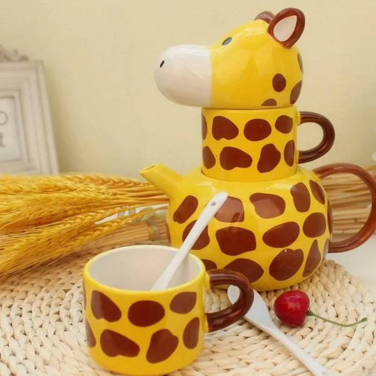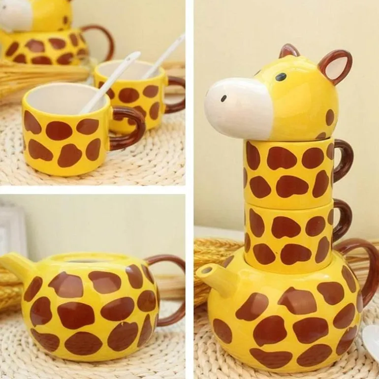 1x Giraffenbecher-Teekannen-Set