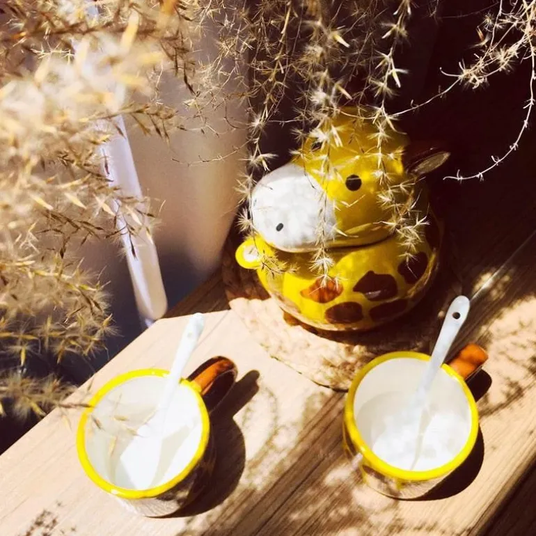 Begeistern Sie Ihre Gäste und werten Sie Ihren Getränkeservice mit diesem einzigartigen Küchengeschirr mit Giraffenmotiv auf.