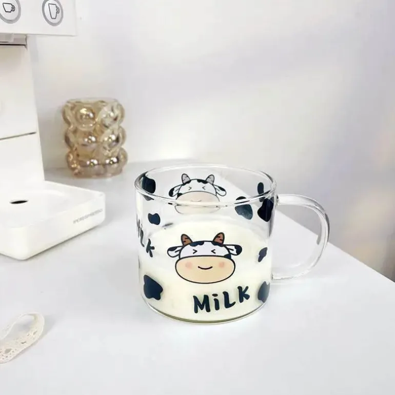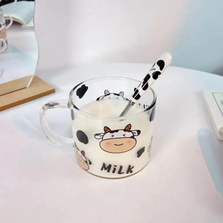 Entdecken Sie den Charme unseres 400 ml Glasbechers mit entzückendem Kuhmuster und innovativem Löffeldeckel – eine hervorragende Ergänzung für Ihre Küche oder Ihr Wohnheimzimmer. Hergestellt aus robustem Borosilikatglas vereint dieser Becher Stil und Funktionalität und ermöglicht Ihnen, Ihre Lieblingsgetränke auf einzigartige und auffällige Weise zu genießen.