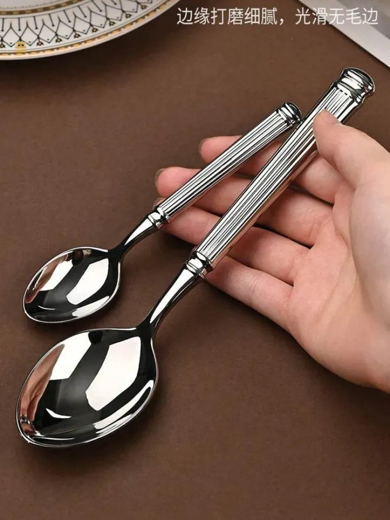 Diese edle Besteckkollektion besticht durch ihr markantes römisches Säulendesign und verleiht jedem Tisch ein künstlerisches Element. Die hochglanzpolierte Oberfläche fängt das Licht ein und reflektiert es, sodass sie sich für viele Anlässe eignet – ob Familienessen, festliche Zusammenkünfte, Hochzeiten oder besondere Anlässe.