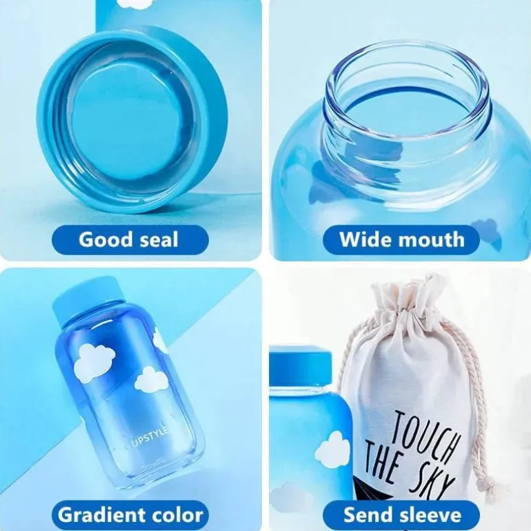 Diese Wasserflasche ist von EEC, LFGB, CIQ, CE/EU und SGS zertifiziert und erfüllt strenge Qualitäts- und Sicherheitsstandards. Die Gradient Sky Glaswasserflasche ist ideal für Erwachsene, die Wert auf Ästhetik und Funktionalität legen. Sie bietet eine durchdachte Lösung für einen stilvollen Flüssigkeitshaushalt. Genießen Sie die perfekte Kombination aus Funktionalität und Eleganz mit diesem außergewöhnlichen Getränkebehälter.