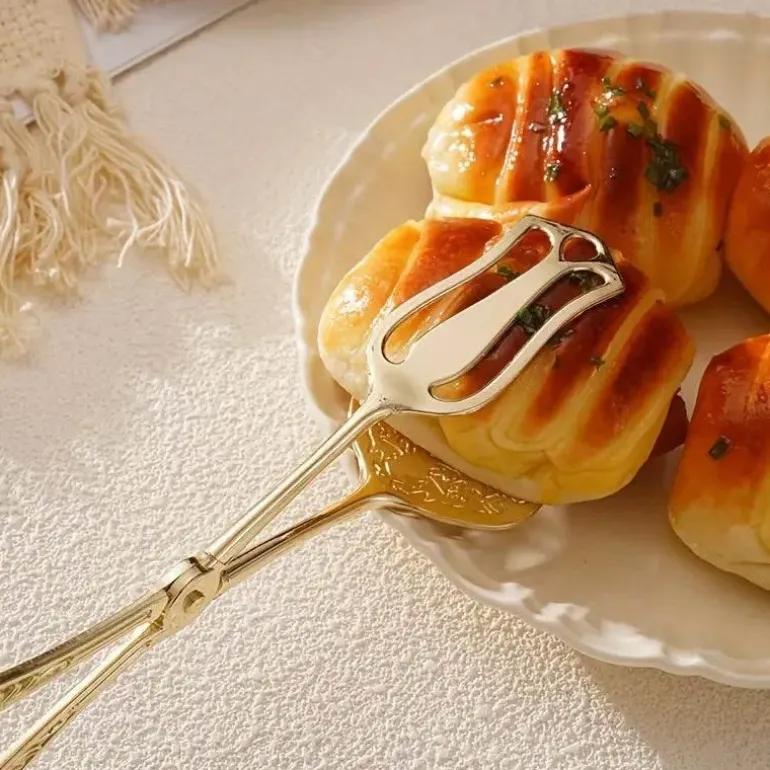 Diese Zange aus hochwertigem Edelstahl mit edlem Gold- und Silberfinish vereint Funktionalität mit Stil und verleiht Ihrem Esstisch eine elegante Note. Ideal zum Servieren verschiedenster Gerichte, verbindet sie Funktionalität und Ästhetik und veredelt sowohl alltägliche Mahlzeiten als auch besondere Anlässe. Erleben Sie die perfekte Verbindung von Nutzen und Design mit diesem vielseitigen Küchenutensil.