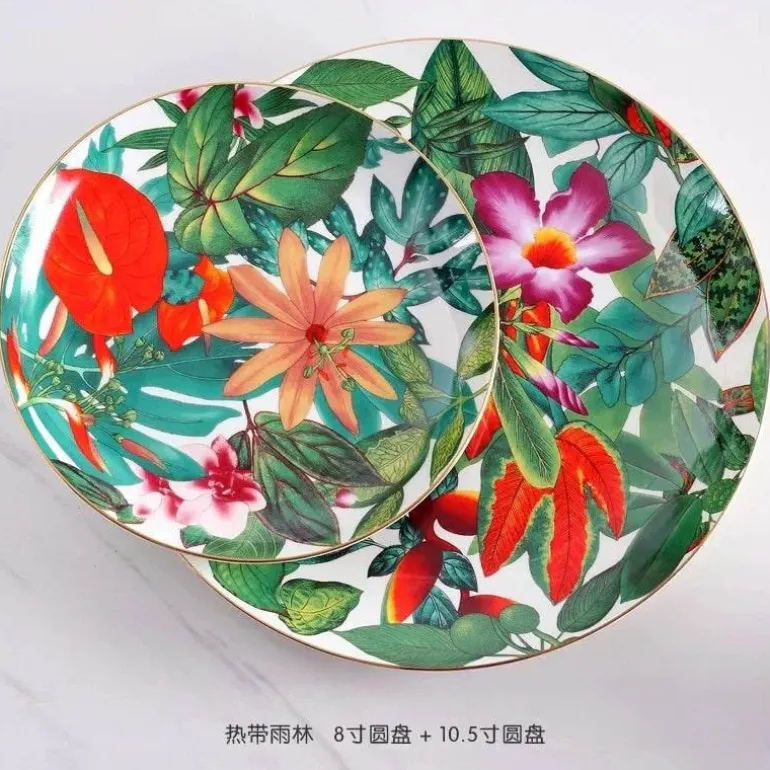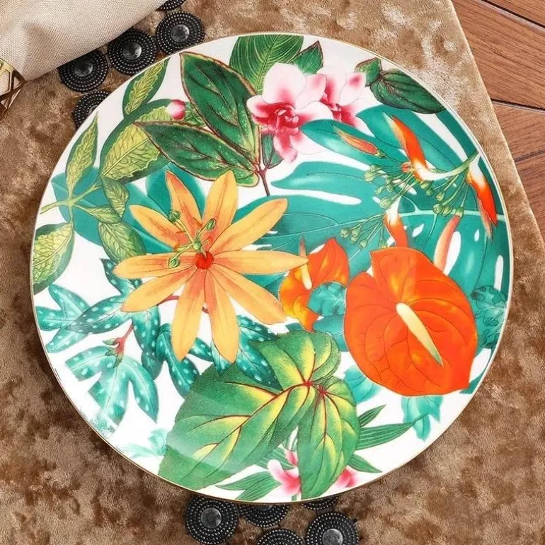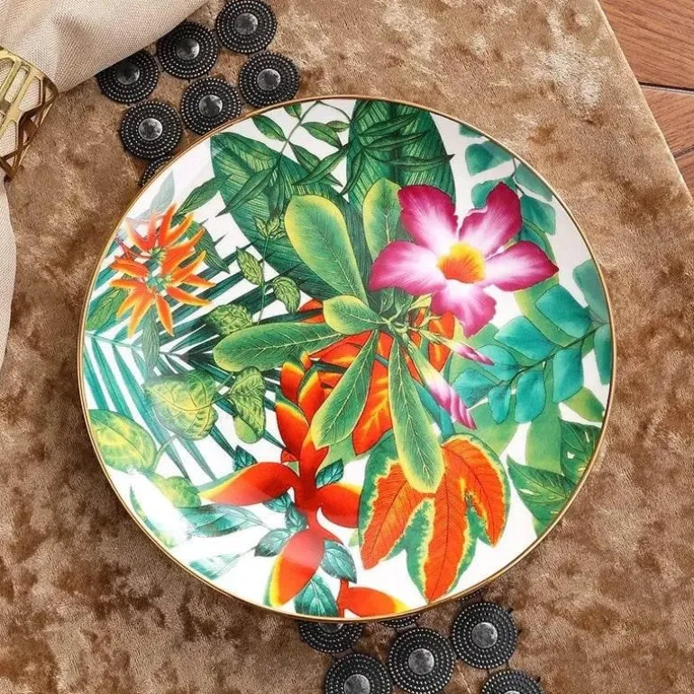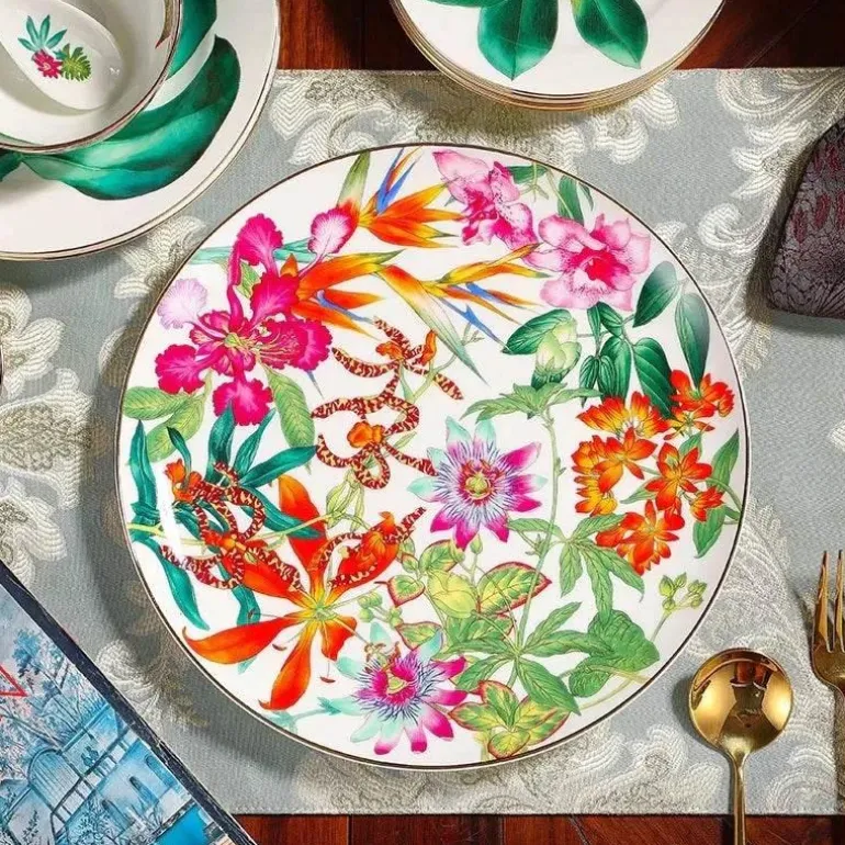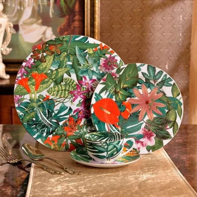 Mit einem bezaubernden Muster aus tropischen Regenwaldblättern und -blüten verleiht diese Kollektion Ihrem Tisch einen Hauch von Natur. Ob Sie feierliche Anlässe veranstalten oder gemütliche Mahlzeiten zu Hause genießen – die Green Leaf Collection ist für jeden Anlass das Richtige.