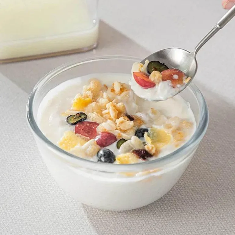 Dieser langlebige und umweltfreundliche Joghurtbereiter aus hochwertigem Edelstahl verfügt über ein Sieb- und Siebdesign, das sowohl die Joghurtherstellung als auch die Reinigung vereinfacht. Er erfüllt die Sicherheits- und Qualitätsnormen CE/EU, CIQ und LFGB.