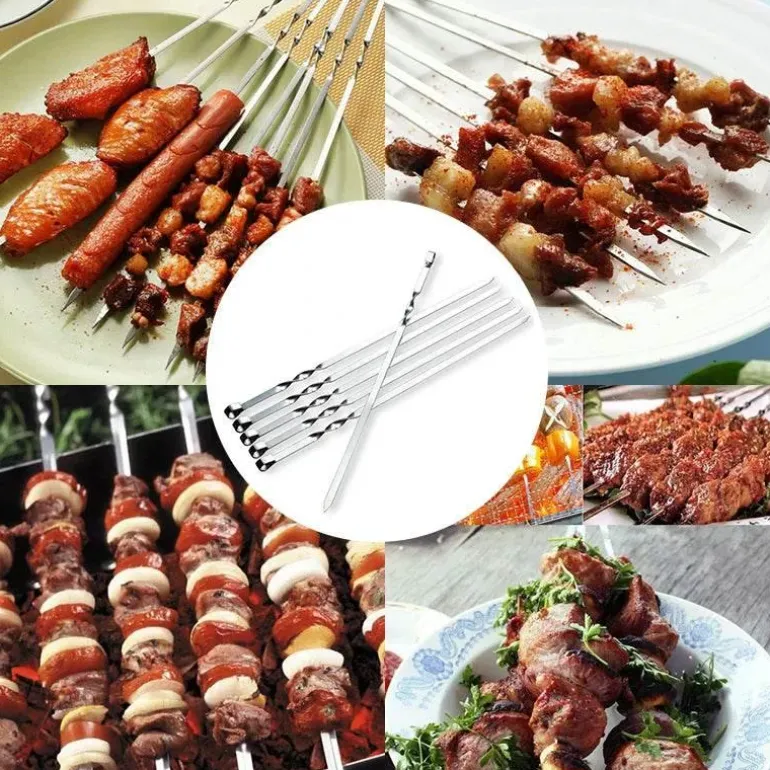 Dieses Set enthält 6 bis 8 Spieße und ist somit ideal für gemütliche Zusammenkünfte oder Familiengrillabende. Das elegante Design wertet Ihre Gartenmöbel optisch auf und sorgt für eine einfache Handhabung beim Grillen verschiedener Fleischsorten, Meeresfrüchte und Gemüse.