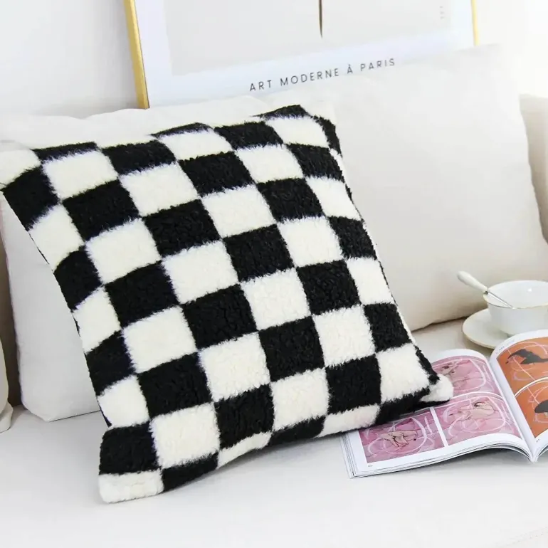 Wir präsentieren den Hahnentritt-Kissenbezug – eine wunderschöne Ergänzung für Ihre Wohnaccessoires. Dieser Kissenbezug ist aus hochwertigen Materialien gefertigt und besticht durch sein raffiniertes schwarz-weißes Schleifendesign, das jedem Raum Eleganz verleiht.