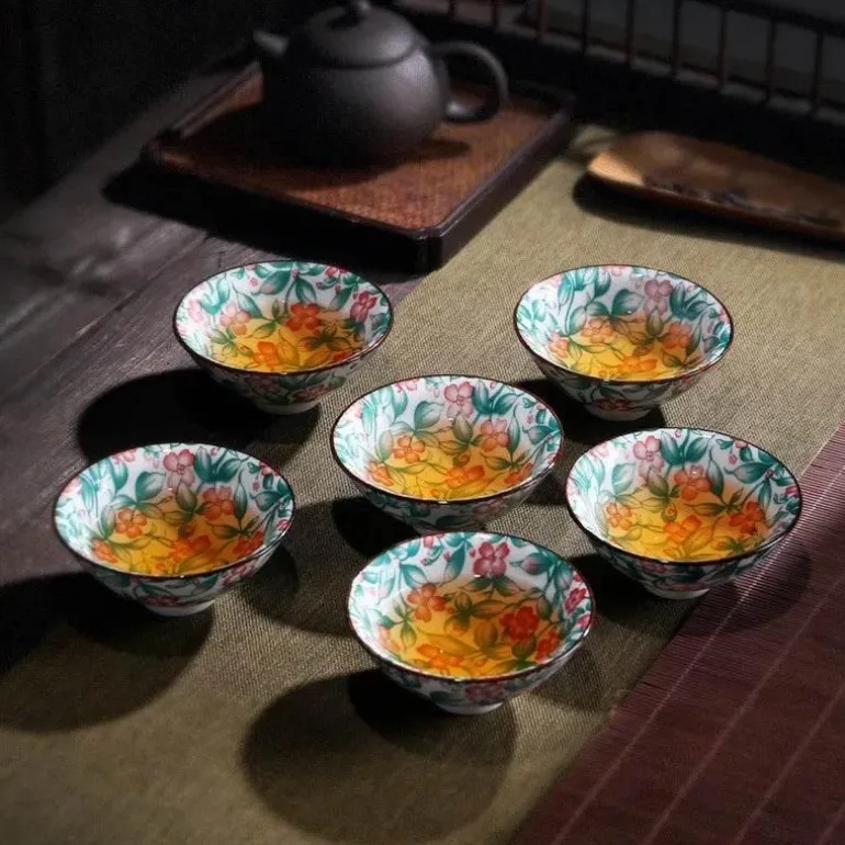 Mit einem Fassungsvermögen von 90 ml ist diese Teetasse ideal für den Genuss Ihrer Lieblingsgetränke. Jedes Stück besticht durch aufwendige handgemalte Details, die jede Tasse zu einem einzigartigen Kunstwerk machen und Ihren Teeritualen Schönheit und Bedeutung verleihen.