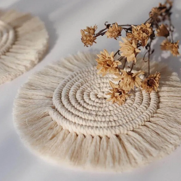 Der handgefertigte nordische Makramee-Untersetzer ist ein umweltfreundliches Accessoire, das Ihre Möbel vor Wasserflecken und Flecken schützt. Hergestellt aus 100 % Baumwollseil und natürlicher Jutekordel, bietet dieser langlebige Untersetzer nicht nur Funktionalität, sondern ist auch leicht zu reinigen und somit ideal für den täglichen Gebrauch.