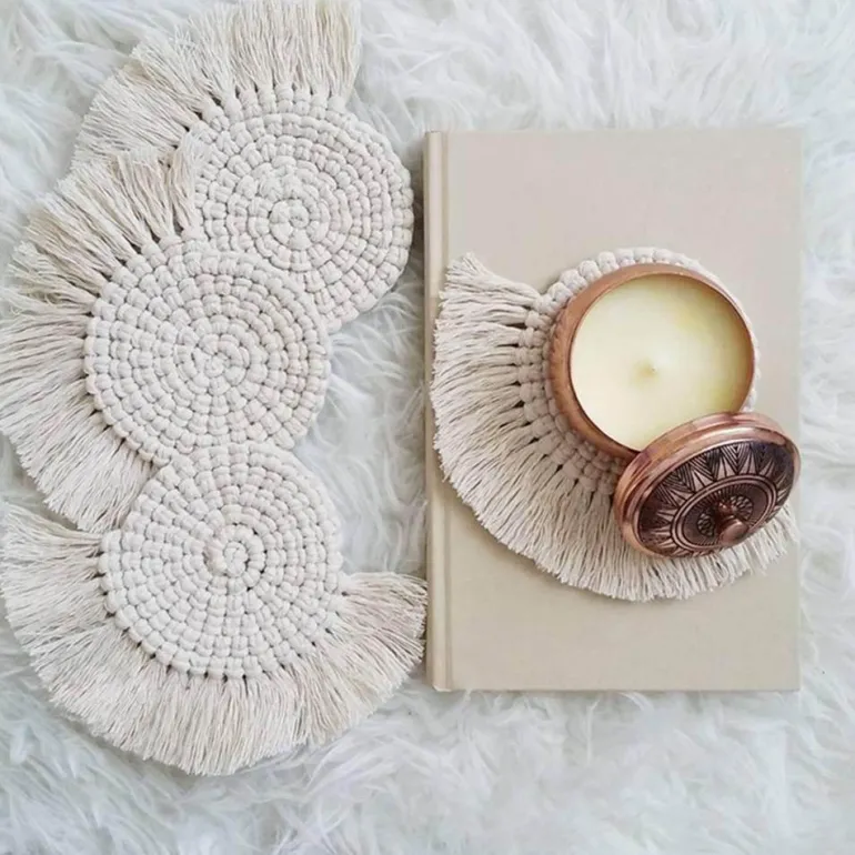 Dieser vielseitige Untersetzer ist vielseitig einsetzbar: Er eignet sich perfekt als Topfuntersetzer, Tischset, Platzset, rutschfeste Isolierunterlage und vieles mehr. Mit seiner böhmischen Folklore- und Vintage-Ästhetik verleiht der Nordic Macrame Coaster jedem Dekor eine charmante Note.