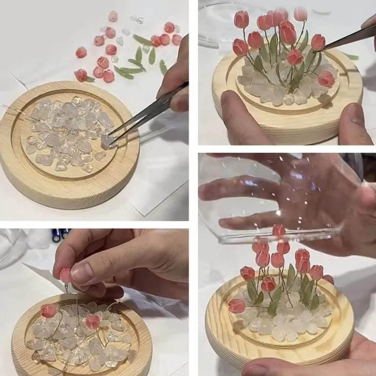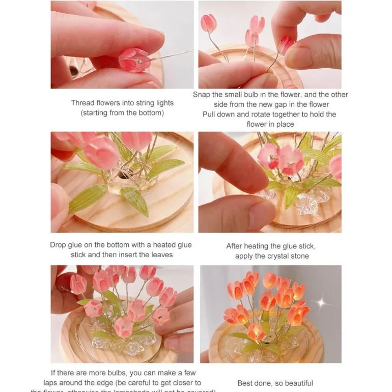 Die Tulpe, Symbol ewiger Liebe, Glück und wertvoller Schätze, inspiriert dieses dekorative Nachtlicht. Dieses handgefertigte Tulpen-Nachtlicht sorgt nicht nur für bezaubernde Beleuchtung, sondern verleiht jedem Raum einen bezaubernden Charme. Es ist ein liebevolles Geschenk für Freundinnen, Partner oder Freunde und lädt mit seiner Do-it-yourself-Funktion zur Kreativität ein, sodass Sie Freude am Gestalten haben.