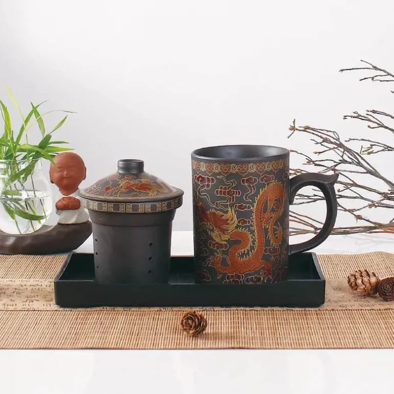 Werten Sie Ihr Teeritual mit der handgefertigten Yixing-Teetasse mit Deckelsieb auf, bei der jeder Schluck eine harmonische Mischung aus Geschmack und Tradition widerspiegelt und die Hingabe zur Kunstfertigkeit und modernen Raffinesse zur Schau stellt.