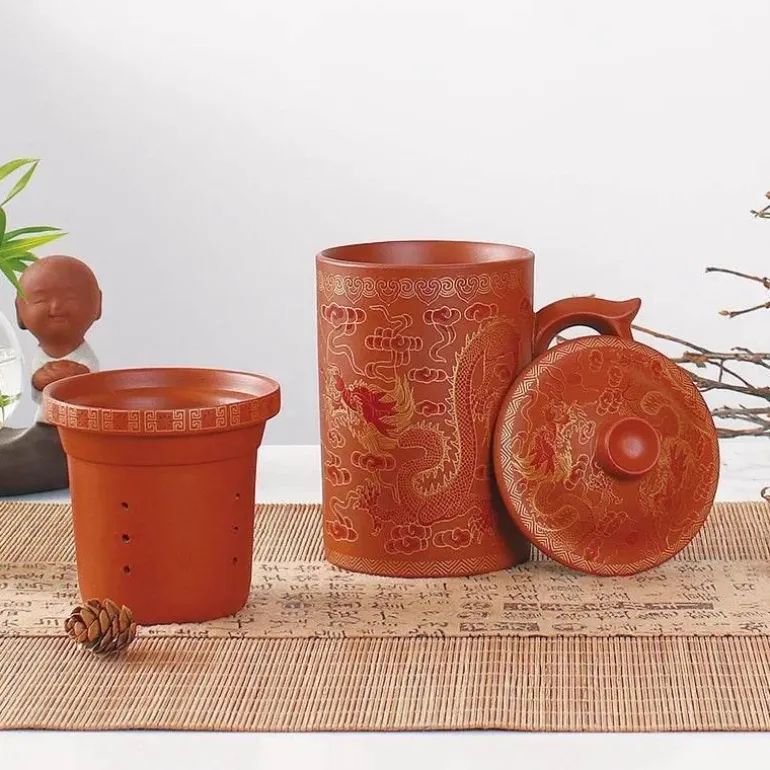 Erleben Sie die Kunst des Teetrinkens mit unserer handgefertigten Yixing-Teetasse mit integriertem Deckelsieb für komfortables Aufbrühen. Diese einzigartige Teetasse wurde sorgfältig aus hochwertigem Zisha-Ton gefertigt und fasst großzügige 450 ml. Damit ist sie der ideale Begleiter für Ihre täglichen Teerituale.