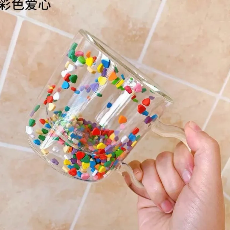 Entdecken Sie den bezaubernden herzförmigen Treibsandglasbecher, ein kreatives Stück, das lebendiges Design mit funktionaler Eleganz für Ihre Trinkgefäßsammlung verbindet. Dieser doppelwandige Becher aus hochwertigem Glas ist eine ausgezeichnete Wahl für Partys und besondere Anlässe und verleiht Ihren Zusammenkünften Stil und Funktionalität.
