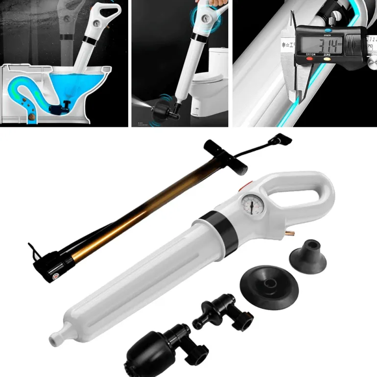 Suchen Sie nach einer effizienten Lösung für Ihre Toilettenverstopfung? Die Hochdruck-Toilettenpumpe hilft Ihnen, Verstopfungen schnell und effektiv zu beseitigen. Dieses innovative Werkzeug nutzt die Kraft von Druckluft, um Verstopfungen zu beseitigen. Schädliche Chemikalien und mühsame Handarbeit sind nicht erforderlich. Befestigen Sie die Pumpe einfach an der Toilettenschüssel, und schon löst sich die Verstopfung mühelos.