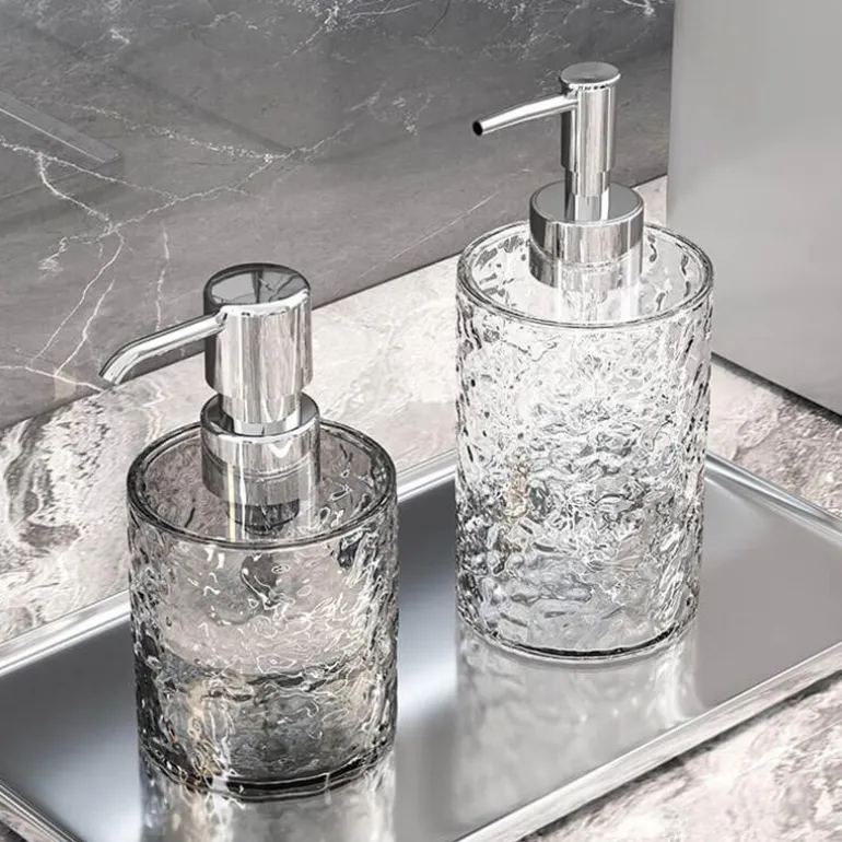 Enhance your bathroom decor with this elegant glacier-patterned foaming soap dispenser. Designed for versatility, this push-type dispenser is ideal for dispensing shower gel, shampoo, or hand soap.