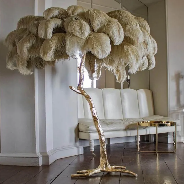 Features: Feather Gold Copper Brass Resin Floor Lamp