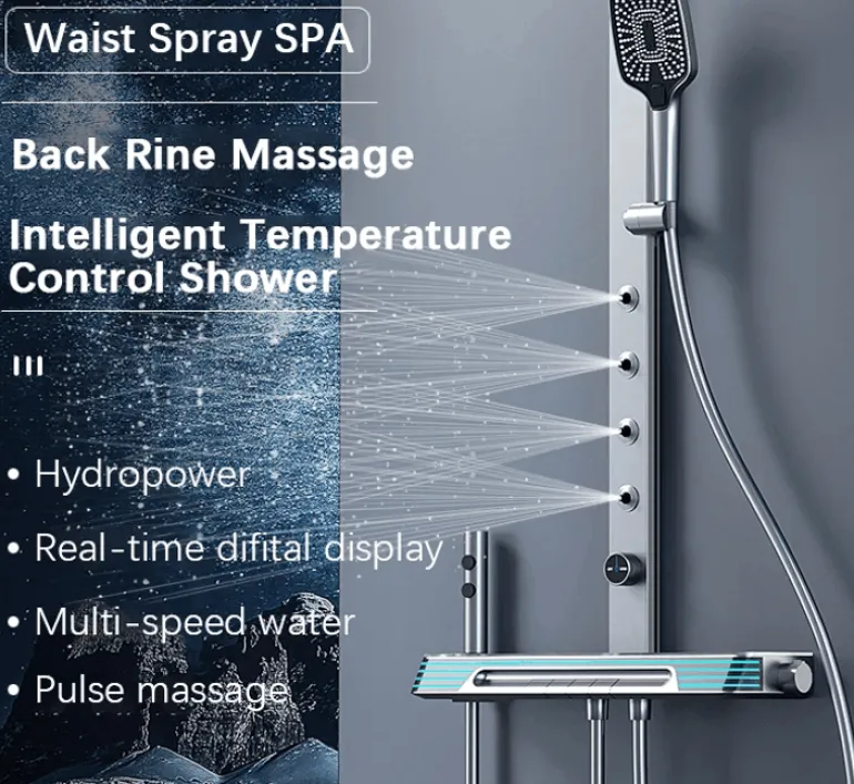 Verwandeln Sie Ihre tägliche Dusche mit dem Piano Smart Digital Shower Massage System in ein erholsames Erlebnis. Dieses durchdachte System vereint Funktionalität und Entspannung und verwandelt Ihr Badezimmer in einen ruhigen Wellness-Oase. Mit seinem eleganten Wanddesign und der benutzerfreundlichen Digitalanzeige ist Luxus nun fester Bestandteil Ihrer täglichen Routine. Die integrierte Massagefunktion lindert Verspannungen nach einem langen Tag und verleiht Ihrem Badezimmer gleichzeitig einen modernen Touch.