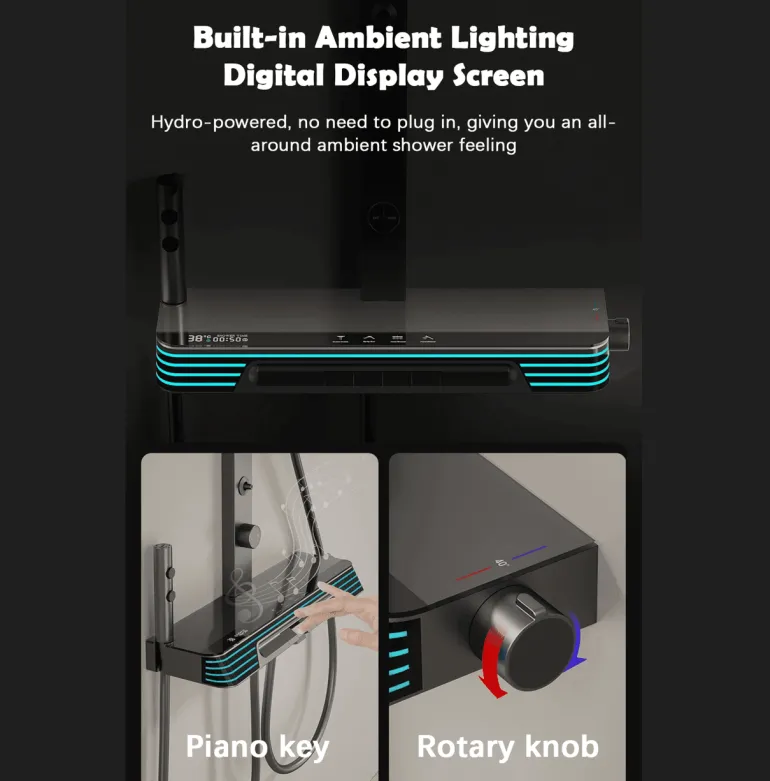 Im Gegensatz zu herkömmlichen Duschsystemen verfügt das Piano Smart Digital Shower System über fortschrittliche digitale Bedienelemente und anpassbare Sprüheinstellungen, die den Komfort und die Zufriedenheit des Benutzers erheblich steigern.