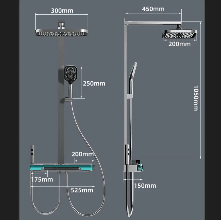 Zu den wichtigsten Funktionen gehören eine benutzerfreundliche Digitalanzeige, mehrere Massageoptionen (Regen, sanfter Nebel, Puls), eine robuste Messingkonstruktion mit elegantem Chrom-Finish und ein Wandmontagedesign, das den Platz maximiert und gleichzeitig Unordnung minimiert.