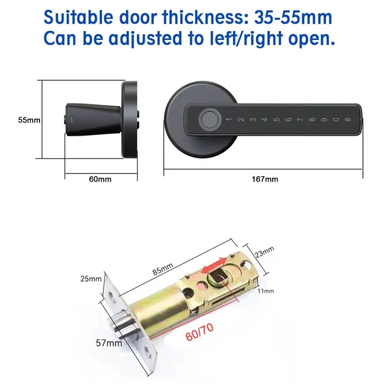 Entsperrmethoden: Fingerabdruck, Passcode, Karte, Tuya Bluetooth, temporärer Passcode, mechanischer Schlüssel