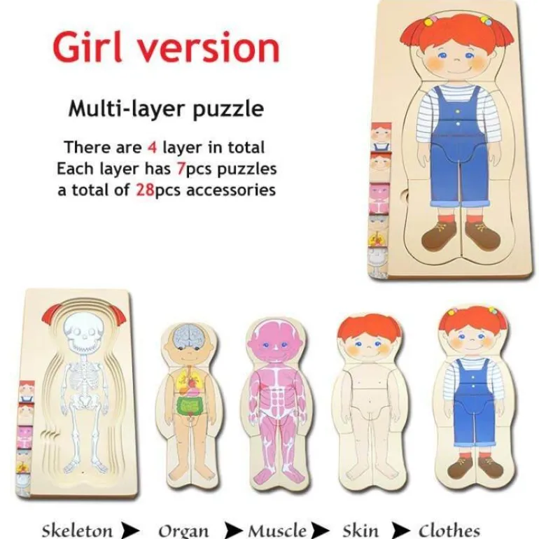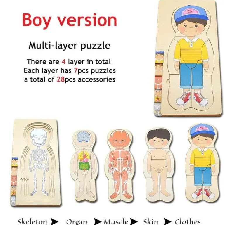 Dieses interaktive Anatomiemodell weckt nicht nur die Neugier, sondern fördert auch spielerisches Lernen und schafft eine unterhaltsame und anregende Umgebung, in der sich Kinder mit den Funktionen des menschlichen Körpers auseinandersetzen können. Die robuste Konstruktion aus hochwertigem Holz hält den Belastungen des aktiven Spiels stand und ist somit eine hervorragende Ergänzung sowohl für den Unterricht als auch für das Zuhause.