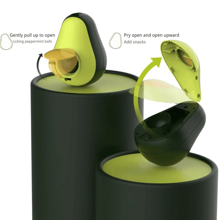 Der Avocado Wobbler verfügt über eine einstellbare Leckerli-Ausgabefunktion, sodass Sie den Schwierigkeitsgrad an die Fähigkeiten Ihrer Katze anpassen können. Dieses durchdachte Design sorgt dafür, dass Ihre Katze bei jeder Sitzung ein lohnendes Erlebnis genießt und die Jagd nach Leckerlis noch befriedigender wird.