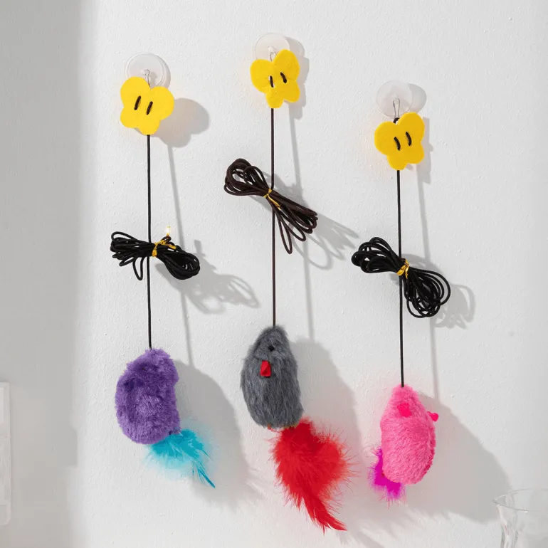 Unser Set enthält drei einzigartige Spielzeuge, sodass Ihre Katze für jede Spielrunde ihr Lieblingsspielzeug auswählen kann. Für zusätzliche Sicherheit ist die Seillänge verstellbar, sodass das Spielzeug in der passenden Höhe für Ihren Raum platziert werden kann.