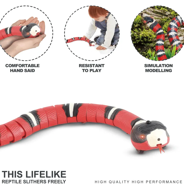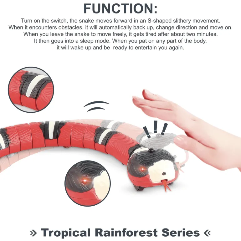 Bringen Sie mit unserem innovativen Schlangenspielzeug Spannung und Faszination in die Spielzeit Ihrer Katze. Dieses interaktive Spielzeug fesselt Ihren Stubentiger mit lebensechten Bewegungen wie Zungenschnalzen, Schwanzschwingen und blinkenden Augen bei Hindernissen.
