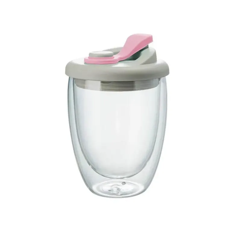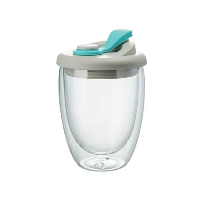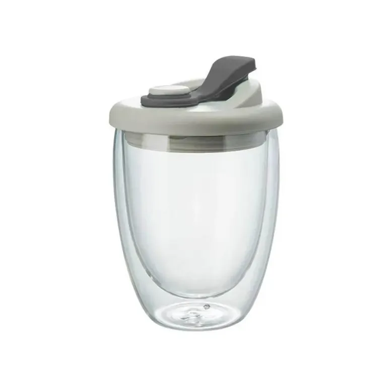 1 x auslaufsicherer, doppelwandiger, transparenter Glasbecher.