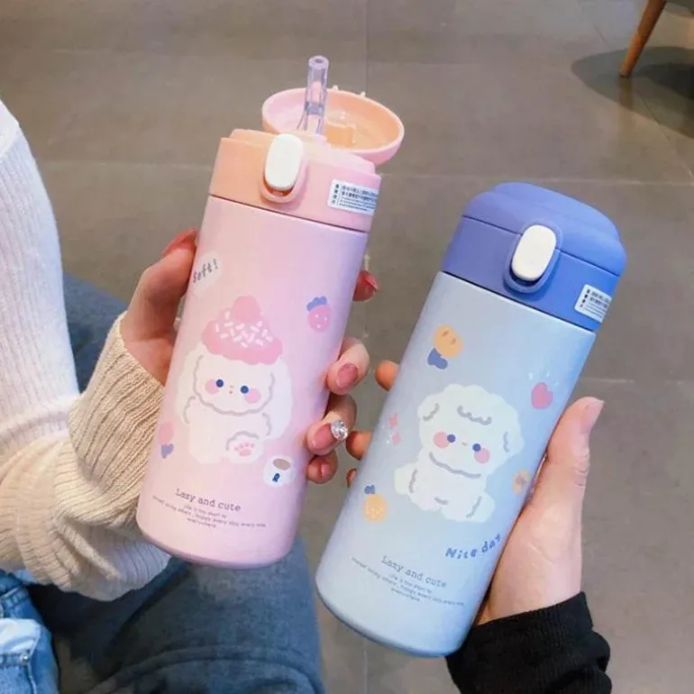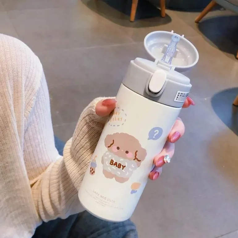 Entdecken Sie den Cute Insulated Straw Cup, die ideale Thermo-Trinkflasche für Ihren aktiven Lebensstil. Die Isolierflasche aus hochwertigem Edelstahl bietet hervorragende Wärmeisolierung und hält Ihre Getränke 6 bis 12 Stunden lang warm oder kalt.