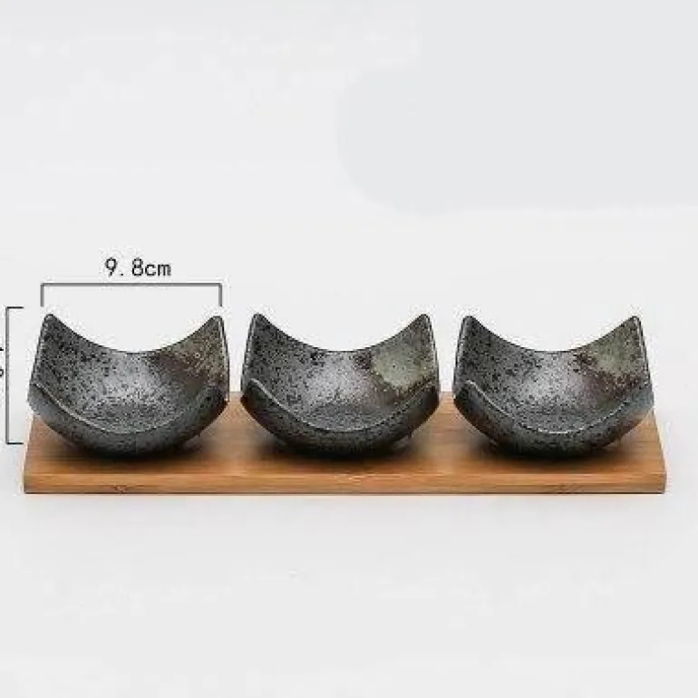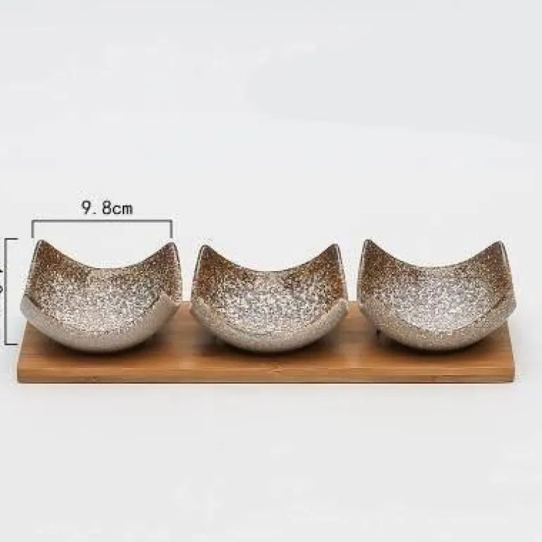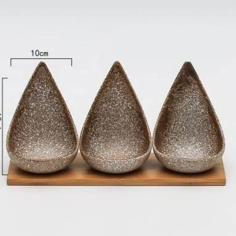 1 x 3er-Set Snackteller mit Holztablett – ideal für die stilvolle Präsentation Ihrer Lieblingssnacks. Verschönern Sie Ihre Gäste mit diesem charmanten Geschirr, das Kunstfertigkeit und Funktionalität vereint.