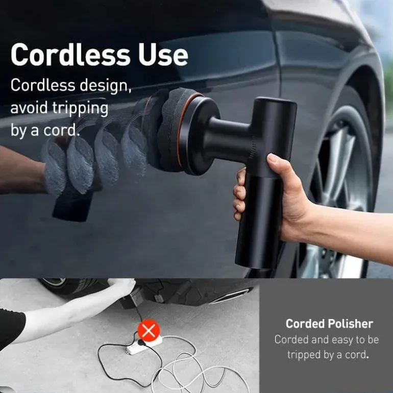 Dieser kabellose elektrische Autopolierer und -wachser wurde sowohl für Autoliebhaber als auch für Profis entwickelt und revitalisiert mühelos das Äußere Ihres Fahrzeugs. Das kabellose Design bietet außergewöhnliche Bewegungsfreiheit und ermöglicht Ihnen mühelosen Zugang zu jeder Kurve und Ecke Ihres Fahrzeugs. Die Maschine verfügt über einen leistungsstarken Motor, der gleichmäßige Polier- und Wachsergebnisse liefert und Wirbel, Kratzer und Oxidation effektiv entfernt, um ein atemberaubendes, spiegelglattes Finish zu erzielen.