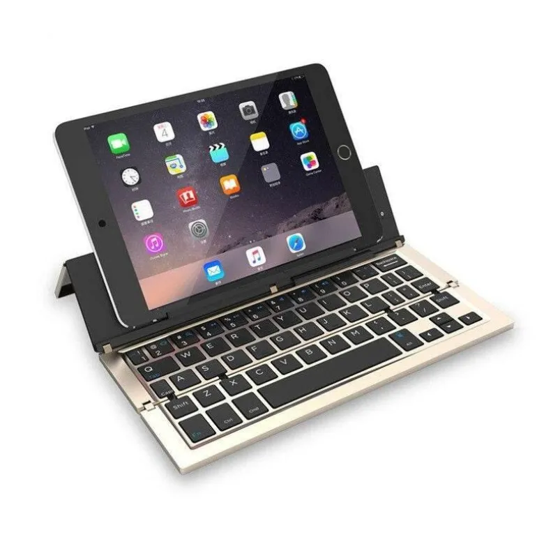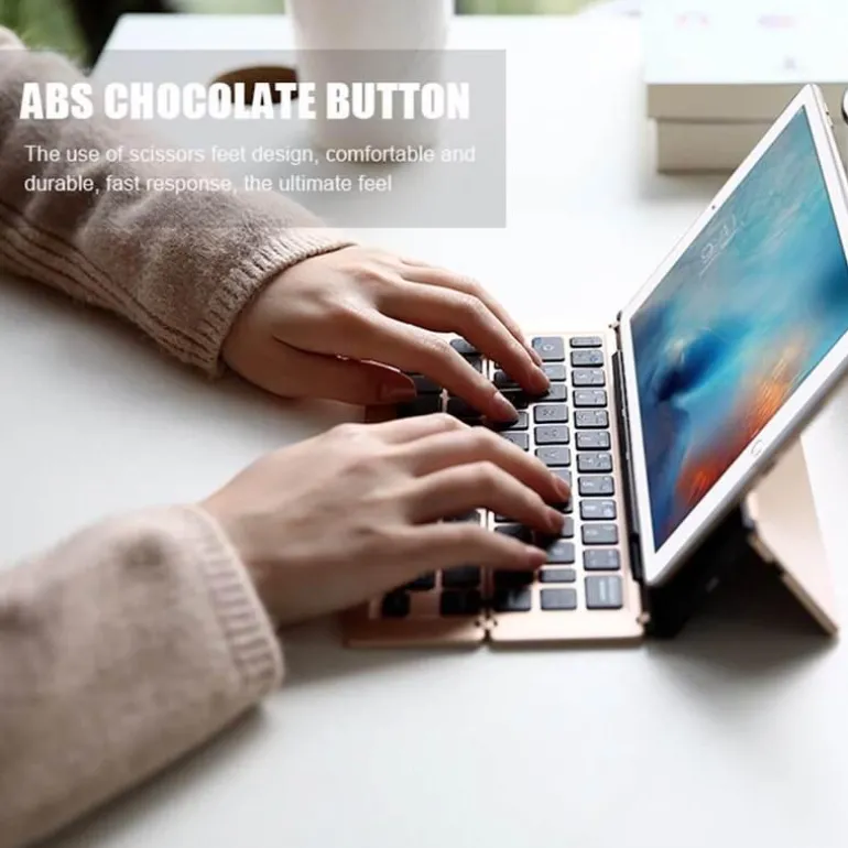 In der Box finden Sie 1 tragbare, kabellose, faltbare Tablet-Halterungstastatur, mit der Sie Ihre Produktivität unterwegs steigern können.