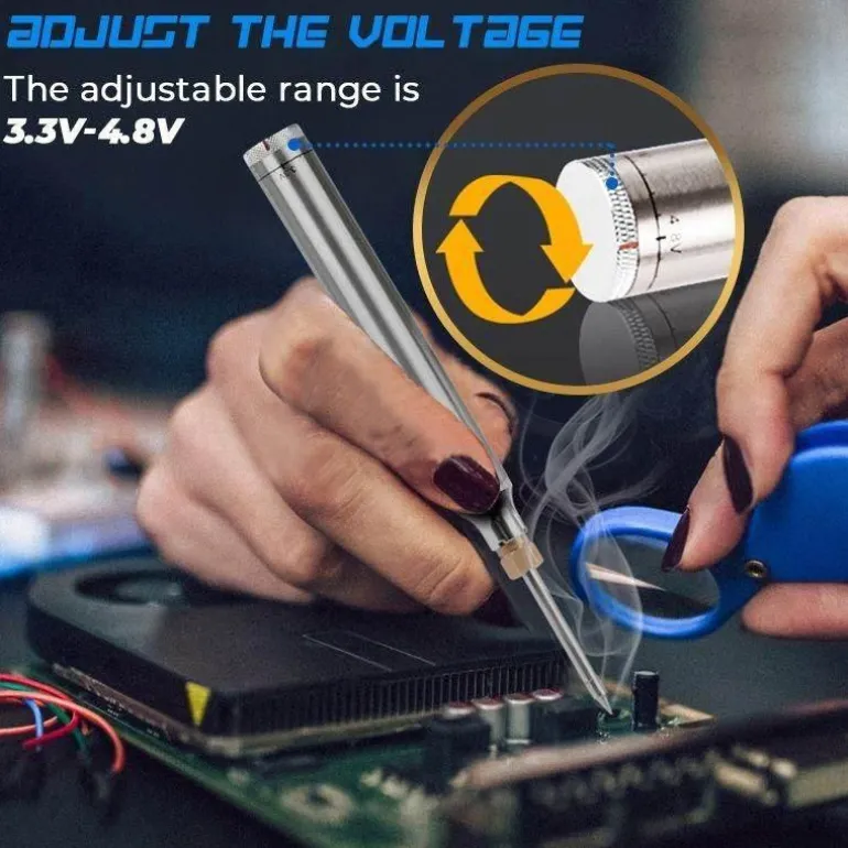 Erleben Sie die Leichtigkeit und Effizienz des Präzisionslötens mit diesem kompakten und tragbaren Werkzeug. Der kabellose USB-Präzisionslötkolben ist ideal für Hobby- und Profi-Lötarbeiten und ein unverzichtbares Zubehör für Ihren Werkzeugkasten.