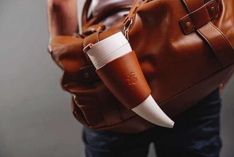 Die Lederhülle unterstreicht die Ästhetik des Bechers und dient gleichzeitig als Ständer. So können Sie den Becher problemlos auf jeder Oberfläche abstellen. Dieser Thermosbecher besteht aus BPA-freien Materialien und bietet höchste Sicherheit und Gesundheit.