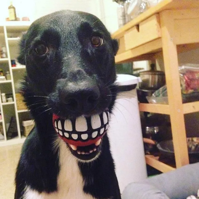 1 x lustiges, lächelndes Kauspielzeug aus Gummi für Haustiere.