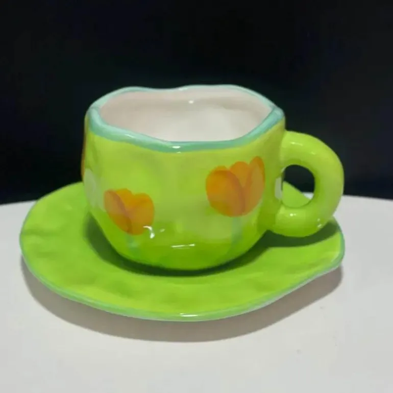 Entdecken Sie das entzückende Keramikbecher-Set mit einem skurrilen Kawaii-Blumenmuster, das Ihre Kaffee- oder Teemomente perfekt verschönert. Jede Tasse ist modern gestaltet und verfügt über einen bequemen Griff für eine einfache Handhabung beim Genießen Ihrer Lieblings-Heißgetränke.