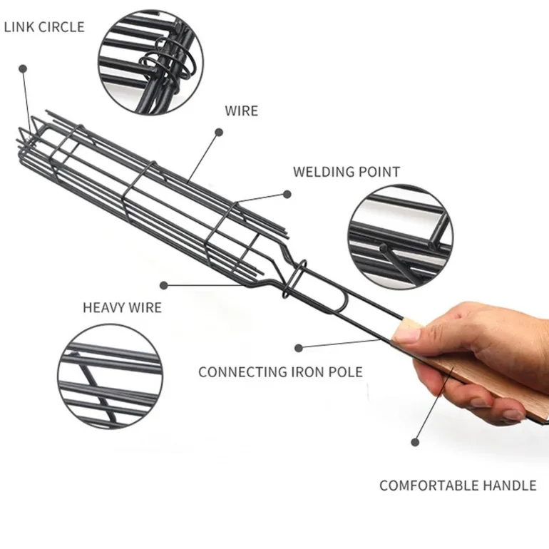 Wenn Sie gerne grillen, aber die dabei entstehende Unordnung frustrierend finden, bietet dieser Grillkorb die praktische Lösung. Er hält verschiedene Lebensmittel sicher fest, verhindert schmutzige Hände und reduziert das Verbrennungsrisiko beim Wenden von Burgern oder Hähnchenbrust. Legen Sie Ihr Grillgut einfach in den Korb und lassen Sie es sorgenfrei perfekt garen. Freuen Sie sich jedes Mal auf köstliche, gleichmäßig gegrillte Gerichte.
