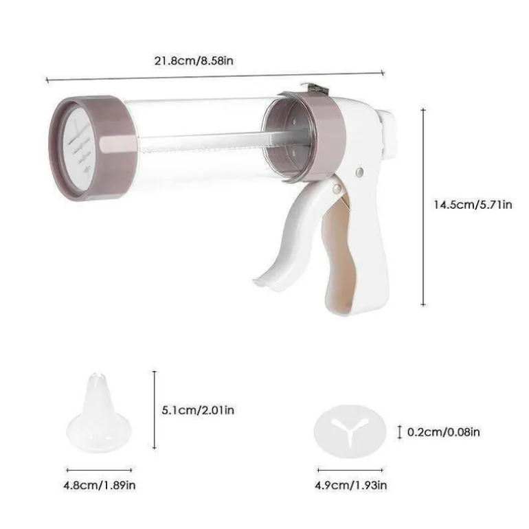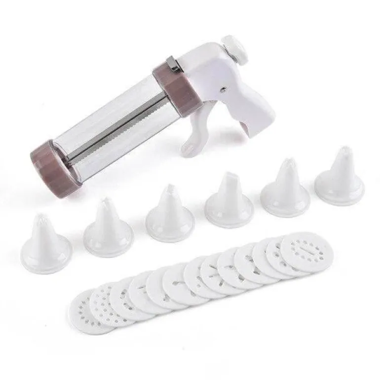 Das Set enthält 13 austauschbare Spitzen, mit denen Sie mühelos eine Vielzahl wunderschöner Plätzchendesigns kreieren können. Der ergonomische, griffige Abzugsgriff aus ABS-Kunststoff ermöglicht Ihnen komfortables und präzises Dekorieren Ihrer Backwaren.