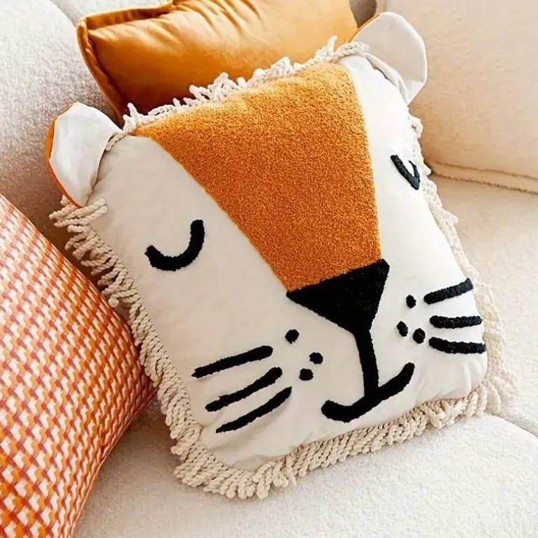 Bringen Sie den verspielten Geist der Wildnis mit dem King Maji Kissenbezug in Ihren Wohnraum. Dieser einzigartige, dekorative Kissenbezug besticht durch ein handgesticktes Löwengesicht mit skurrilen Details und ist ein Blickfang in jedem Raum. Die strukturierte Fransenmähne bietet ein haptisches Erlebnis, während die weichen Plüschohren eine reizende Note verleihen, die zum Mitmachen einlädt.