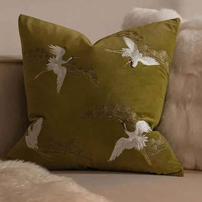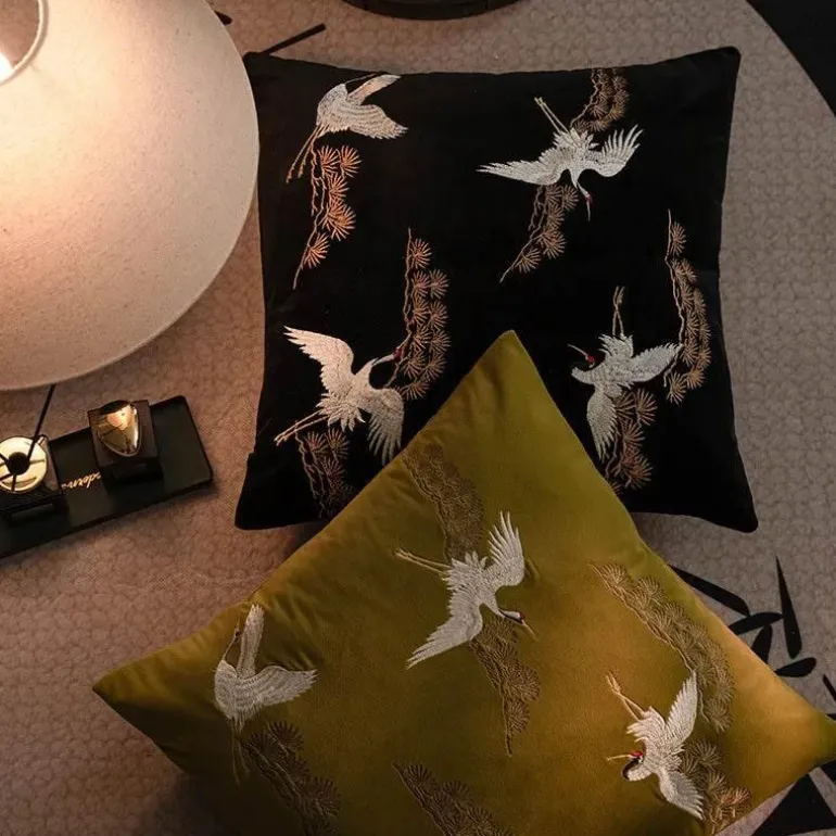 Verleihen Sie Ihrem Zuhause mit dem bestickten Kissenbezug mit Kranichmotiv einen Hauch von Luxus. Mit seiner zeitlosen Optik und der hochwertigen Verarbeitung ist er eine unverzichtbare Ergänzung für alle, die ihre Inneneinrichtung aufwerten möchten.
