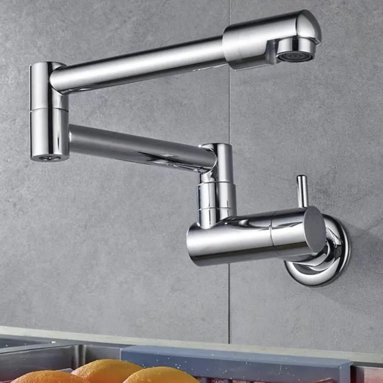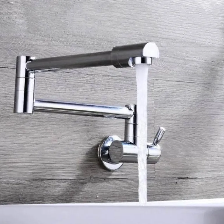 1 x wandmontierter, klappbarer Topffüller aus Chrom.