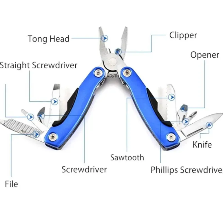 – **Doppelfunktion:** Dieses kompakte Werkzeug vereint verschiedene Funktionen wie Zange, Messer, Schraubendreher, Dosenöffner und mehr und ist somit der ideale Begleiter für diverse Outdoor-Aufgaben.