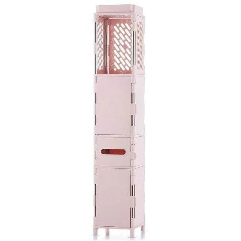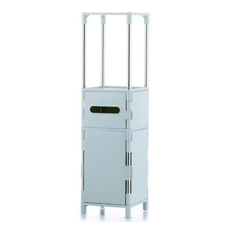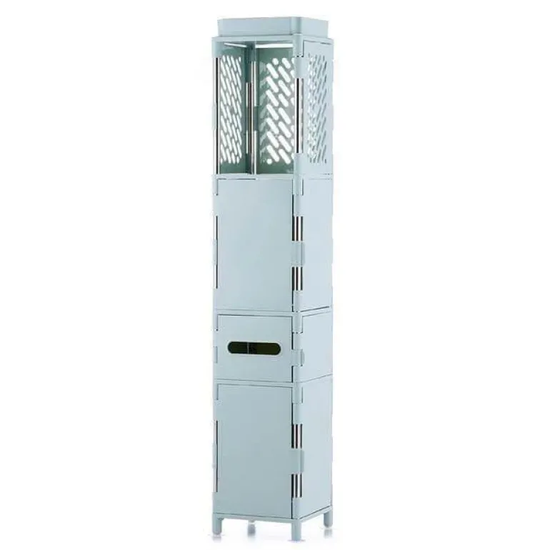 Ausgestattet mit Türen und Regalen bietet dieses Aufbewahrungsmöbel eine praktische Möglichkeit, Handtücher, Shampoo und andere wichtige Utensilien aufzubewahren und so für Ordnung im Badezimmer zu sorgen. Der Schrank aus strapazierfähigem, wasserdichtem PP-Material ist umweltfreundlich und sicher und eignet sich daher perfekt für feuchte Umgebungen.
