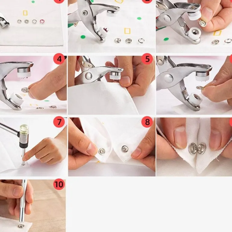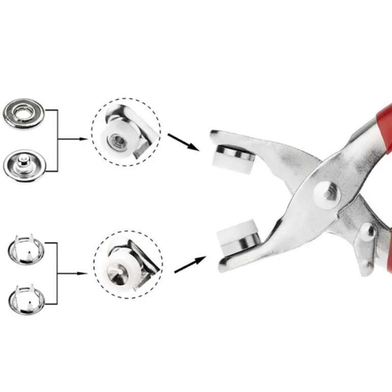 Dieses vielseitige Nähwerkzeug wurde speziell entwickelt, um Knöpfe beim Zuknöpfen sicher an Ort und Stelle zu halten und ist somit eine unverzichtbare Ergänzung für Ihr Nähset. Es eignet sich perfekt zum schnellen Anbringen oder Ersetzen von Ösen und ermöglicht die Arbeit mit verschiedenen Materialien wie Stoff, Vinyl, Segeltuch und Leder bis zu einer Materialstärke von 3,5 mm (1/8 Zoll).