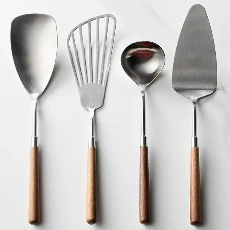 Veredeln Sie Ihr kulinarisches Erlebnis mit diesem Edelstahl-Kochset mit stilvollen Pfirsichgriffen, die Funktionalität und Optik perfekt vereinen. Diese sorgfältig zusammengestellte Kollektion umfasst einen Tortenheber, eine Bratschaufel, ein Brotmesser und einen Löffel. Alle Teile sind aus hochwertigem Edelstahl gefertigt und gewährleisten Langlebigkeit und Benutzerfreundlichkeit.